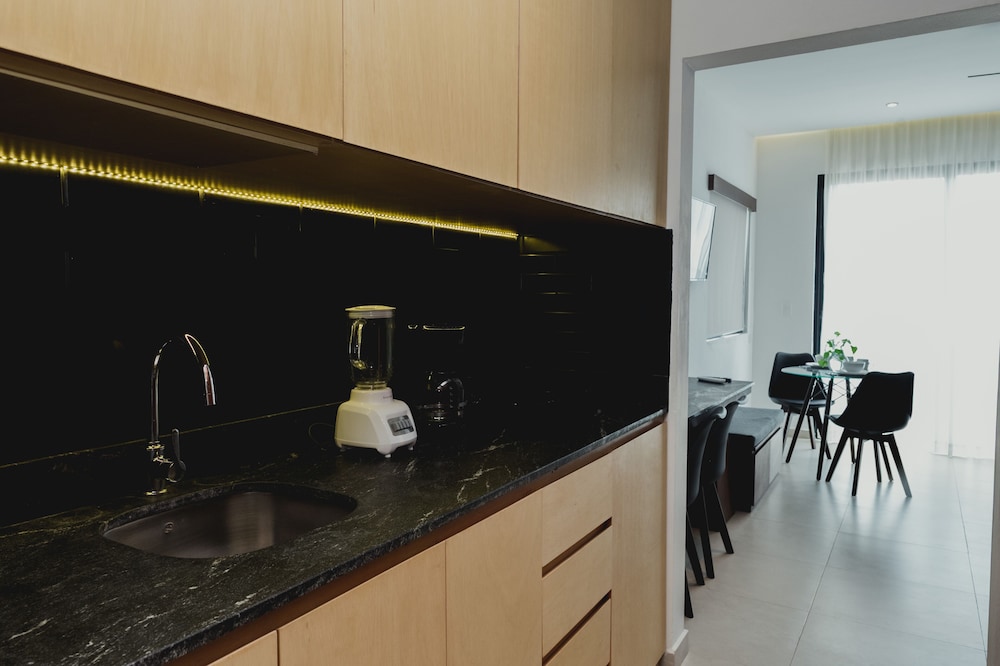 Si decides alojarte en Phantom Suites, te encontrarás en una fantástica zona de Playa del Carmen (Zazil-ha) y estarás a solo 5 min a pie de Playa Mamitas y a 8 de Playa principal de Playa del Carmen. Además, este hotel se encuentra a 0,6 km de Quinta Avenida y a 10,5 km de Parque temático Xplor. Reserva una de las 19 habitaciones con cocina, placa de cocina y microondas, y disfruta de una estancia inolvidable. Con la televisión de pantalla plana y la conexión wifi gratis, tendrás para elegir a la hora de entretenerte. Entre las comodidades, se incluyen caja fuerte, escritorio y la posibilidad de solicitar tabla de planchar con plancha. Las distancias se expresan en números redondos.