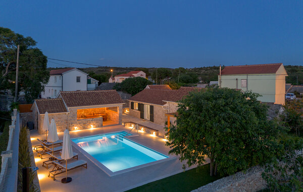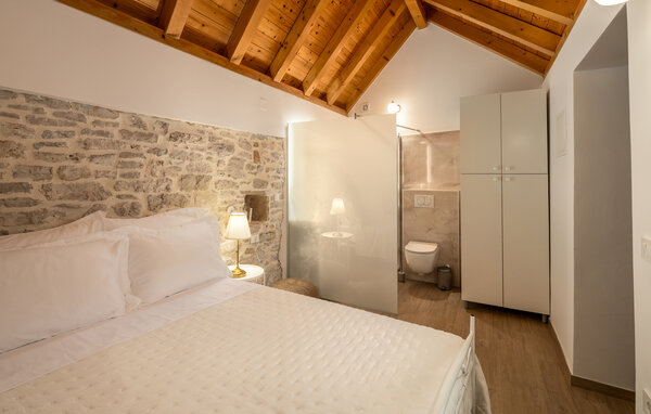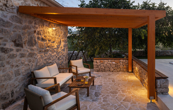 Your holiday home near Primosten consists of three separate houses, which offer you and your fellow travellers both privacy and sociable get-togethers. Each house has its own bedroom and bathroom so that all guests can feel at home. Start the day with a refreshing dip in the saltwater pool and let the sun warm your skin on the comfortable loungers on the terrace. Enjoy the peaceful atmosphere in the shaded lounge area or take a refreshing dip in the outdoor shower. The little ones can let off steam in the children's playground while you make yourself comfortable on the terrace.