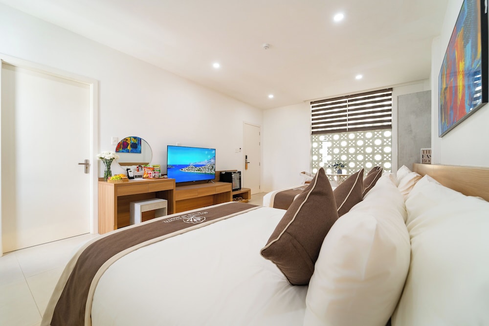 Si decides alojarte en Quy Nhon Sea Hotel de Quy Nhon, estarás cerca de la playa, a apenas 4 min a pie de Ghenh Rang Tien Sa y a 3 en coche de Destino turístico Ham Ho. Además, este hotel de playa se encuentra a 3,7 km de Estadio Qui Nhon y a 3,8 km de Pagoda Long Khanh. Te sentirás como en tu propia casa en cualquiera de las 25 habitaciones con aire acondicionado y minibar. Mantén el contacto con los tuyos gracias a la la conexión wifi gratis. El cuarto de baño está provisto de ducha y secadores de pelo. Entre las comodidades, se incluyen botella de agua gratuita y ventilador de techo, además de un servicio de limpieza disponible todos los días. Las distancias se expresan en números redondos.
