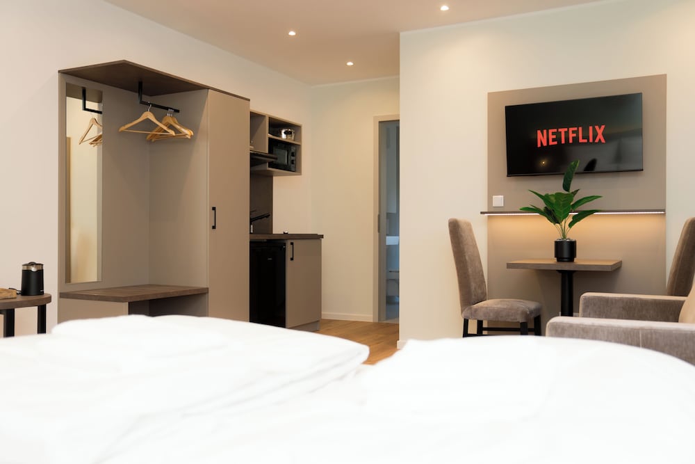 Living Inn de Rheda-Wiedenbrück está a menos de 15 minutos en coche de Parque Flora Westfalica y Stadtmuseum Gütersloh. Además, este hotel se encuentra a 10,7 km de Jardín botánico de Guetersloh y a 10,8 km de Miele-Museum. Reserva una de las 12 habitaciones con cocina básica, frigorífico y horno, y disfruta de una estancia inolvidable. La conexión wifi gratis te mantendrá en contacto con los tuyos. Además, podrás disfrutar de canales por cable. Entre las comodidades, se incluyen caja fuerte y escritorio, además de un servicio de limpieza disponible cada semana. Las distancias se expresan en números redondos.