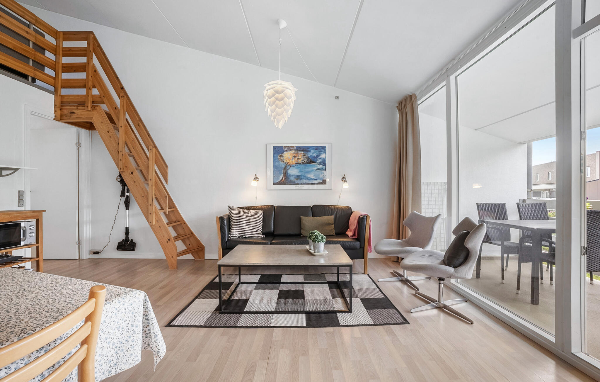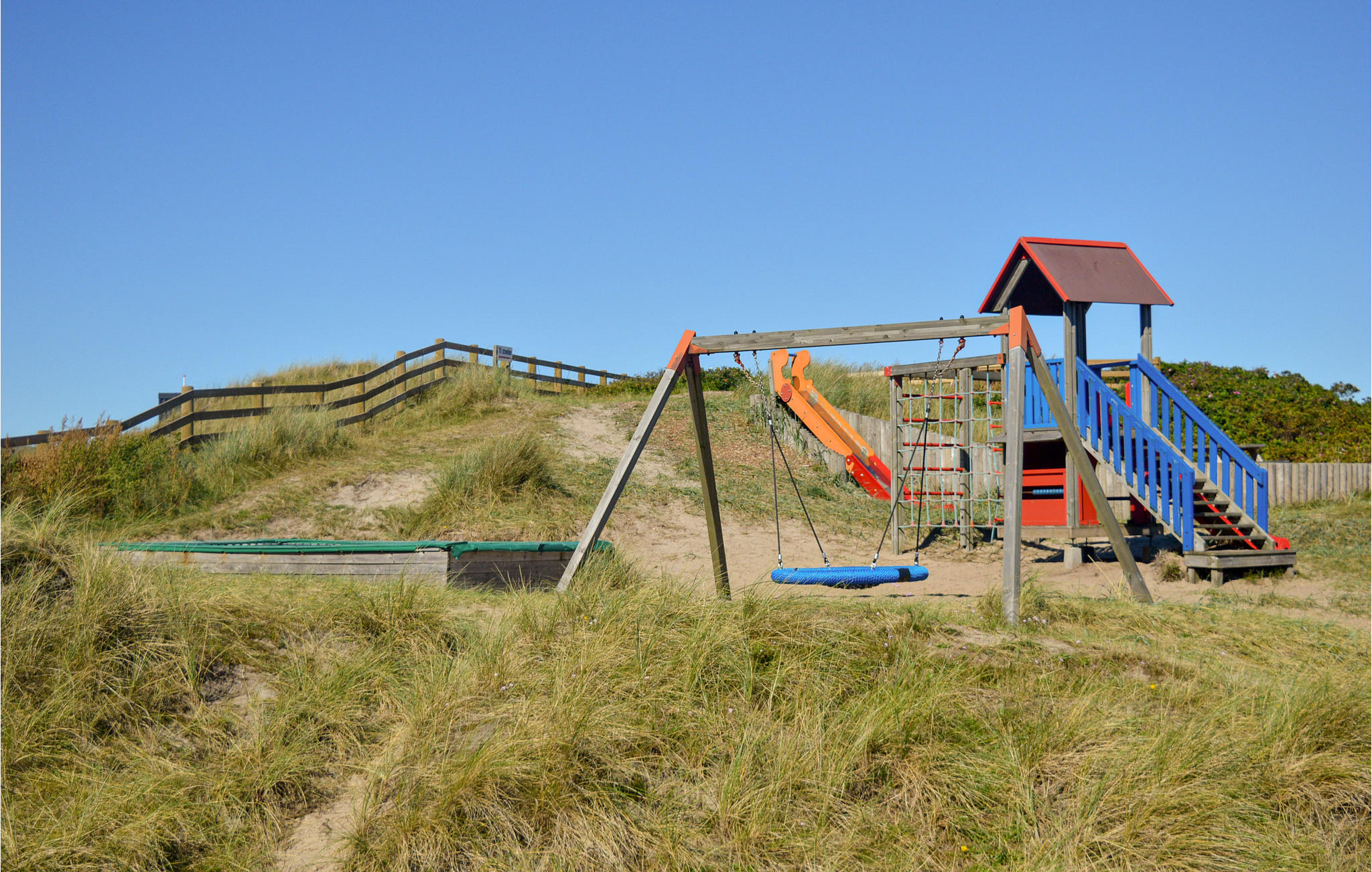 Esta bonita y bien equipada casa de vacaciones en el centro de Søndervig está tan céntrica que podrá llegar a pie a todo lo que necesite.El maravilloso Mar del Norte está a sólo 150 m del piso. Justo enfrente de la casa hay una piscina cubierta y una zona de actividades. El parque infantil está situado de manera que se puede ver desde la puerta principal. Las tiendas y la panadería con pan recién horneado también están a la vuelta de la esquina.El piso está en la primera planta y está bien equipado. Hay un amplio vestíbulo, un bonito dormitorio con cama de matrimonio, un cuarto de baño con ducha y un gran salón-cocina de planta abierta con comedor y zona de estar y acceso al balcón cubierto. Desde el salón, una escalera conduce a una habitación abierta con otras cuatro camas: una cama doble y un sofá cama con espacio para dos personas.- Aparcamiento grat. en el sitio- excluye electricidad- Agua incl.- Aire acondicionado- Escaleras empinadas a la 1ª- Dormitorio sin puerta- Animales domésticos: 1Opcional: - Holiday Kit: 13.00 EUR/Por estancia- Limpieza: 104.00 EUR/Por estancia- Silla de bebe: 16.00 EUR/Por semana- Cama de bebe: 16.00 EUR/Por semana- Ropa de cama, toalla: 16.00 EUR/Por estanciaObligatorio en el lugar: - electricidad: 0.59 EUR/Por kWhEsta bonita y bien equipada casa de vacaciones en el centro de Søndervig está tan céntrica que podrá llegar a pie a todo lo que necesite.