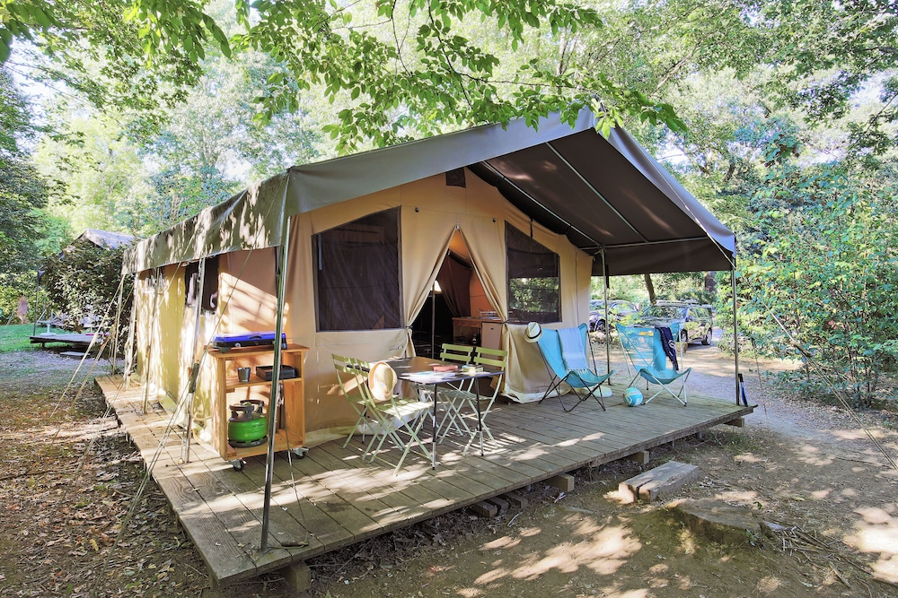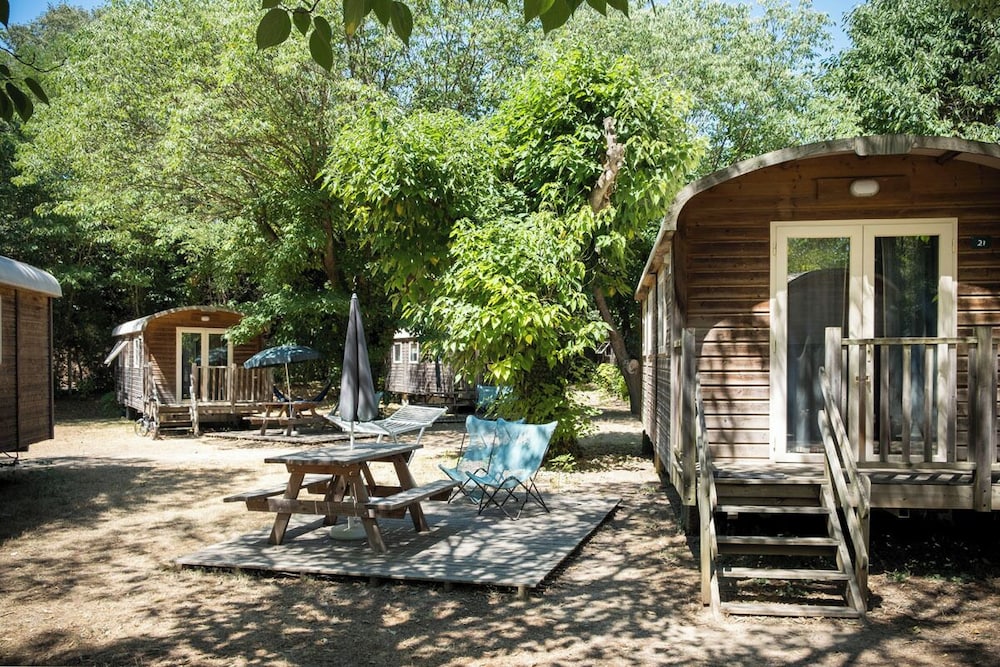 Si decides alojarte en Huttopia Le Moulin de Saint-Julien-de-Peyrolas, estarás en la ribera de un río, a 1 min a pie de Cueva Chauvet-Pont d’Arc y a 11 de Playa Grain de Sel. Además, este camping para familias se encuentra a 4,1 km de Clos Delorme y a 4,7 km de Reserva Natural de las Gargantas del Ardèche. Te sentirás como en tu propia casa en cualquiera de las 23 habitaciones. Entre las comodidades, se incluyen ventilador portátil y la posibilidad de solicitar cunas (de pago). Las distancias se expresan en números redondos.