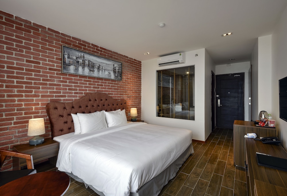 Si decides alojarte en The Marron Hotel de Sam Son, estarás cerca de la playa y a solo 6 min en coche de Playa de Sam Son. Además, este hotel se encuentra a 1,5 km de Plaza del Mar de Sam Son y a 2,1 km de Templo Doc Cuoc. Reserva una de las 121 habitaciones climatizadas, todas equipadas con piscina privada y televisión LCD. La conexión wifi gratis te mantendrá en contacto con los tuyos. Además, podrás disfrutar de canales por cable. Entre las comodidades, se incluyen caja fuerte, escritorio y teléfono. Las distancias se expresan en números redondos.