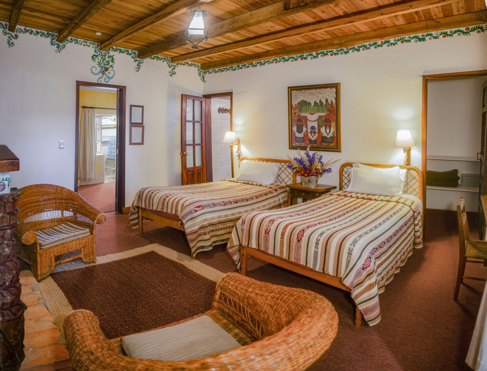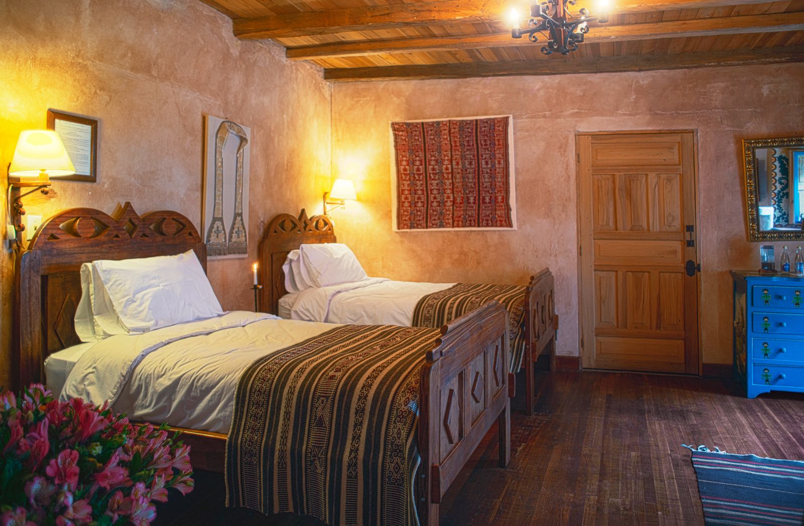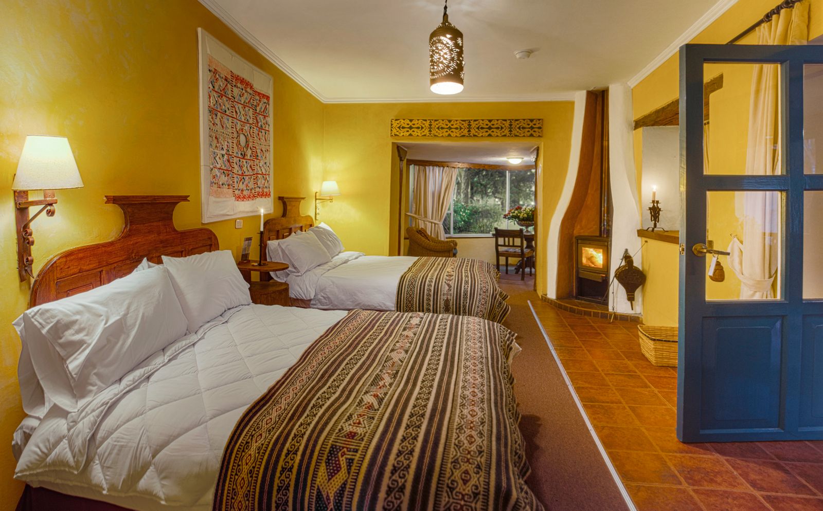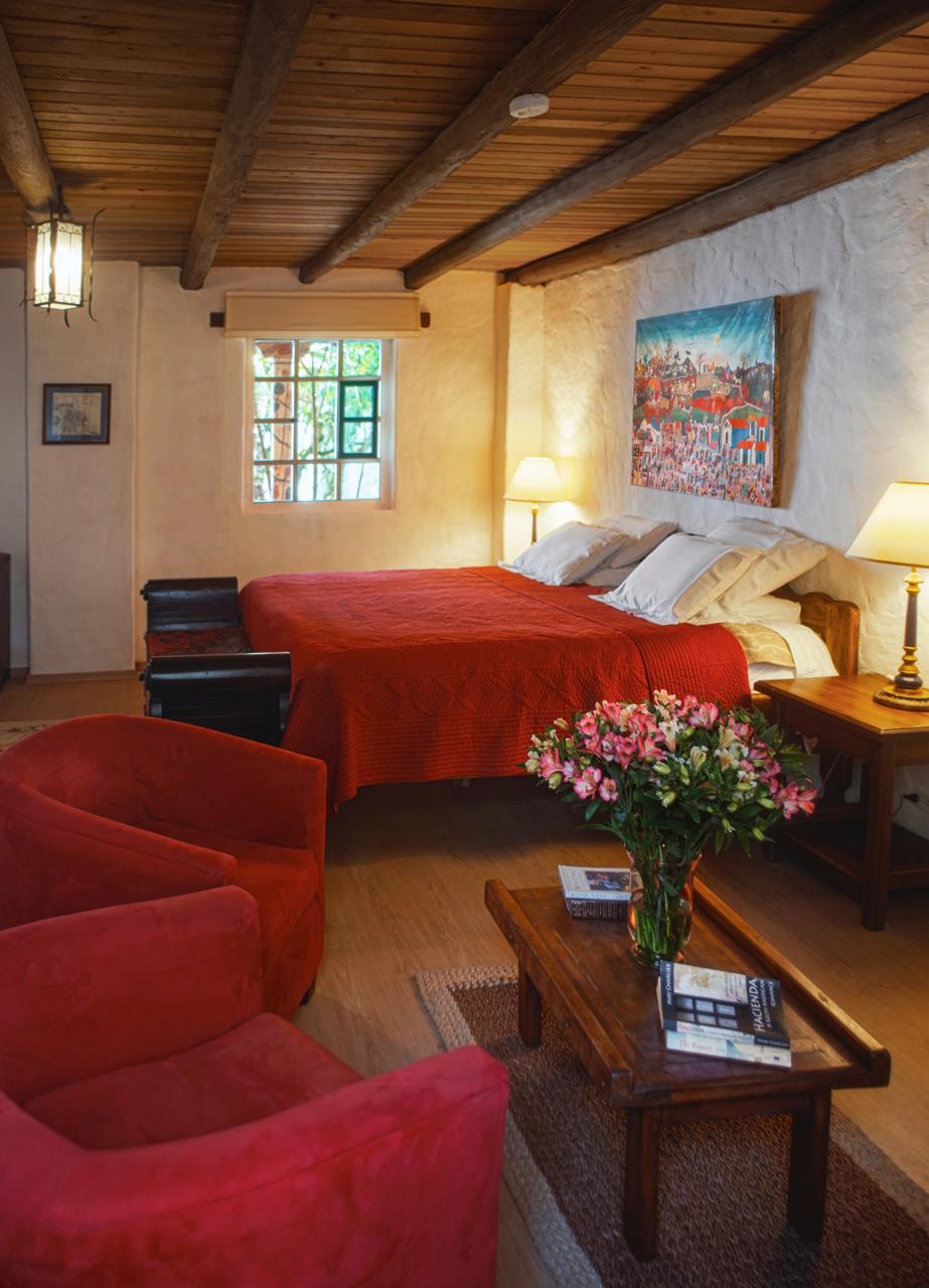 Las habitaciones construidas con vigas de madera y una decoración de temática andina, disponen calefacción y chimenea. Algunas de ellas ofrecen vistas al jardín. Están equipadas con escritorio de madera de época y camas con colchas tejidas a mano.