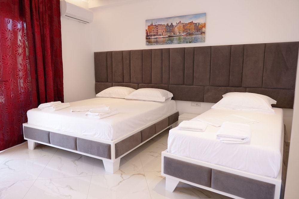 Si decides alojarte en Lumi Hotel, te encontrarás en una fantástica zona de Sarandë (Qafë e Gjashtës) y apenas te separarán cinco minutos en coche de Paseo Marítimo de Sarandë y Museo de Arqueología. Además, este hotel se encuentra a 13 km de Islas Ksamil y a 1,9 km de Restos de la Antigua Onchesmos. Te sentirás como en tu propia casa en cualquiera de las 8 habitaciones con aire acondicionado y televisión de pantalla plana. La conexión wifi gratis te mantendrá en contacto con los tuyos. Además, podrás disfrutar de canales por satélite. El baño privado con ducha está provisto de cabezal de ducha tipo lluvia y bidés. Entre las comodidades, se incluyen escritorio y cortinas opacas, además de un servicio de limpieza disponible todos los días. Las distancias se expresan en números redondos.