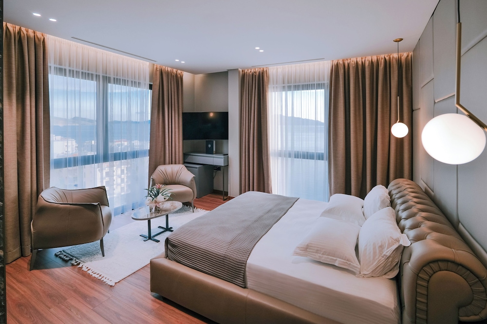 Si decides alojarte en Hotel Saranda Butrinti, Affiliated by Meliá de Sarandë, estarás a apenas 2 min a pie de Paseo Marítimo de Sarandë y a 8 de Museo de Arqueología. Además, este hotel spa se encuentra a 13,7 km de Islas Ksamil y a 1,5 km de Restos de la Antigua Onchesmos. Te sentirás como en tu propia casa en cualquiera de las 87 habitaciones con aire acondicionado, minibar y televisión de plasma. La conexión wifi gratis te mantendrá en contacto con los tuyos. Además, podrás disfrutar de canales por satélite. El baño privado con bañera o ducha está provisto de artículos de higiene personal gratuitos y secadores de pelo. Entre las comodidades, se incluyen caja fuerte (cabe un portátil) y escritorio, además de un servicio de limpieza disponible todos los días. Las distancias se expresan en números redondos.