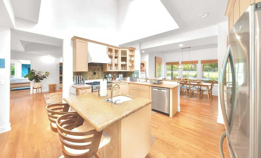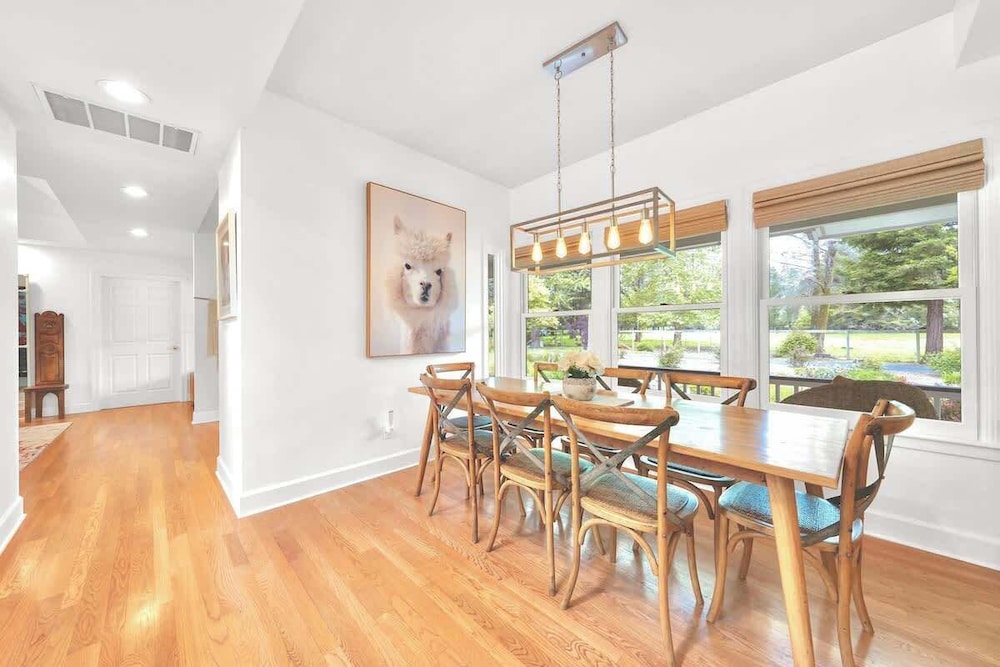 Si decides alojarte en esta casa de campo de Sebastopol, estarás a menos de 15 minutos en coche de Russian River y Marimar Estate Vineyard (vinoteca y viñedos). Además, esta casa de campo se encuentra a 28,7 km de Graton Resort and Casino y a 6,5 km de Viñedos Kistler. Regálate una estancia fantástica en esta casa de campo donde, además de aire acondicionado, tendrás una chimenea. Por su parte, la cocina cuenta con horno, placa de cocina y con microondas. Tendrás una secadora y una tabla de planchar. Y, si lo necesitas, también podrás solicitar una cuna gratuita. Las distancias se expresan en números redondos.