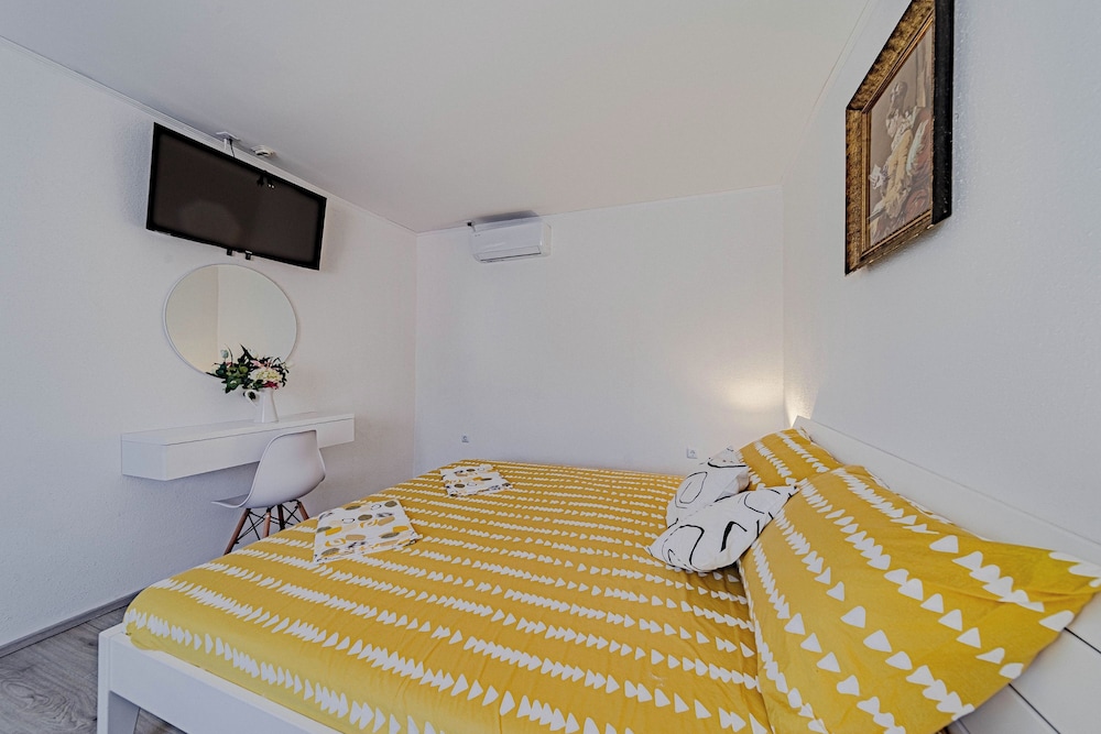 Si decides alojarte en esta casa de vacaciones de Seget, estarás a 39 km de Playa de Primosten y a 18,4 km de Marina Baotic. Además, esta casa de vacaciones se encuentra a 19,8 km de Mercado verde y a 19,8 km de Sitio Histórico de Trogir. Regálate una estancia fantástica en esta casa de vacaciones donde, además de aire acondicionado, tendrás una piscina privada y un televisión de pantalla plana. Y, si te apetece tomar el aire, puedes salir a su balcón, que es de uso privado. Por su parte, la cocina cuenta con frigorífico, horno y con placa de cocina. Podrás mantenerte al día gracias a la conexión wifi gratis y también disfrutar de canales por cable. Las distancias se expresan en números redondos.