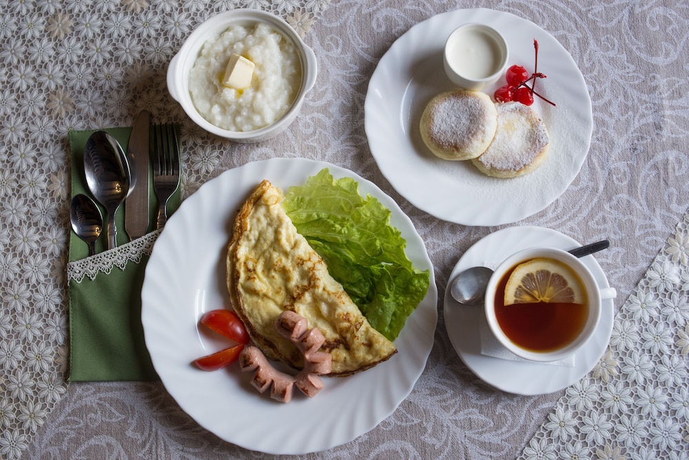 - Desayuno inglés: 400 RUB por persona (precio aproximado)