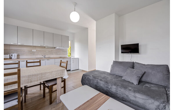 This small but lovely holiday apartment on the car-free island of Zlarin welcomes you with a cosy, light-flooded interior. The bright and functional kitchen has everything you need to prepare delicious meals, which you can enjoy with a view of the greenery. Round off an eventful day on the cosy sofa and make plans for the next day with a glass of wine.