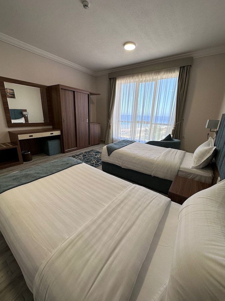 Si decides alojarte en Seaview Hotel de Umluj, estarás en el paseo marítimo y a menos de cinco minutos a pie de Mar Rojo y Playa Umluj. Te sentirás como en tu propia casa en cualquiera de las 39 habitaciones con aire acondicionado, minibar y televisión LCD. La conexión wifi gratis te mantendrá en contacto con los tuyos. Además, podrás disfrutar de canales por cable. El cuarto de baño está provisto de cabezal de ducha tipo lluvia y secadores de pelo. Entre las comodidades, se incluyen caja fuerte, hervidor eléctrico y teléfono. Las distancias se expresan en números redondos.
