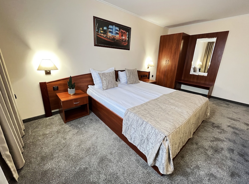 Tendrás un centro de negocios abierto las 24 horas, tintorería y un servicio de recepción las 24 horas a tu disposición. Las instalaciones para eventos de este hotel incluyen centro de conferencias y una sala de reuniones. Con bicicletas de alquiler y muchas otras instalaciones recreativas a tu disposición, no te quedará ni un minuto libre. Encontrarás también conexión a Internet wifi gratis y una tienda de recuerdos. Encontrarás además una peluquería, una televisión en la zona común y un salón de eventos. Tienes un restaurante y una cafetería a tu disposición para comer algo, pero si lo prefieres, puedes llamar al servicio de habitaciones las 24 horas de este hotel. Apaga la sed con tu bebida favorita en el bar o lounge. Se ofrece un desayuno a la carta todos los días de 08:00 a 10:30 con un coste adicional.- Desayuno a la carta: 15 BGN por persona (precio aproximado)
