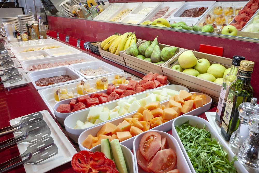 - Se ofrece comida envasada individualmente para el desayuno, el almuerzo y la cena y a través del servicio de habitaciones.