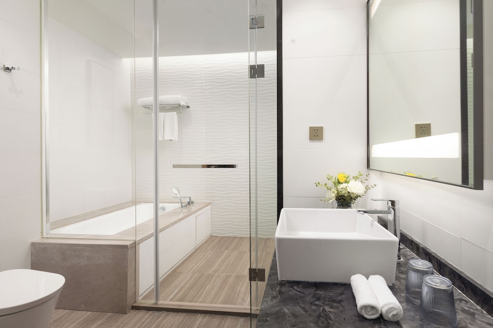 Si decides alojarte en Fraser Place Wujiaochang Shanghai, te encontrarás en una fantástica zona de Shanghái (Distrito de Yangpu) y estarás a menos de 15 minutos en coche de El Bund y Torre de la Perla Oriental. Además, este hotel de lujo se encuentra a 12,3 km de Distrito comercial de Nanjing Road y a 13,5 km de Plaza del Pueblo. Te sentirás como en tu propia casa en cualquiera de las 210 habitaciones con aire acondicionado, minibar y televisión de pantalla plana. La conexión wifi gratis te mantendrá en contacto con los tuyos. Además, podrás disfrutar de canales por cable. El cuarto de baño está provisto de bañera o ducha, artículos de higiene personal gratuitos y secadores de pelo. Entre las comodidades, se incluyen botella de agua gratuita, además de un servicio de limpieza disponible todos los días. Las distancias se expresan en números redondos.