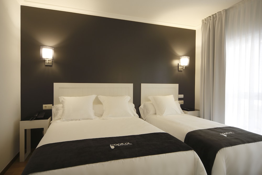Capitol Boutique Hotel está en pleno centro de Santiago de Compostela, a solo diez minutos a pie de Plaza de Galicia y Catedral de Santiago de Compostela. Además, este hotel boutique se encuentra a 0,8 km de Mercado de Abastos de Santiago y a 0,9 km de Estatua de Afonso II. Te sentirás como en tu propia casa en cualquiera de las 19 habitaciones con aire acondicionado, minibar y televisión LCD. Mantén el contacto con los tuyos gracias a la la conexión wifi gratis. El baño privado con bañera o ducha está provisto de artículos de higiene personal gratuitos y bidés. Entre las comodidades, se incluyen caja fuerte, escritorio y teléfono. Las distancias se expresan en números redondos.