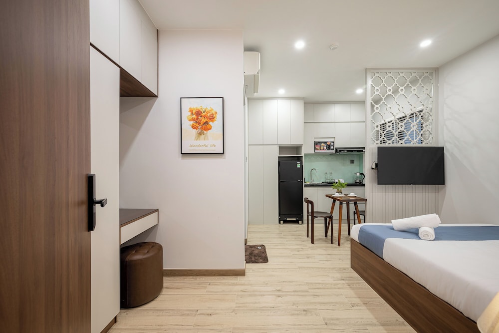 Si decides alojarte en Cozrum Home - Kena House, te encontrarás en una fantástica zona de Ciudad Ho Chi Minh (Binh Thanh) y estarás a menos de cinco minutos en coche de Mercado Ben Thanh y Zoo y Jardín botánico de Saigón. Además, este apartotel se encuentra a 4,3 km de Calle comercial Bui Vien y a 2,7 km de Dong Khoi Street. Reserva una de las 6 habitaciones climatizadas, todas equipadas con cocina con frigorífico y microondas. Con la televisión LCD de 42 pulgadas y la conexión wifi gratis, tienes para elegir a la hora de entretenerte. Entre las comodidades, se incluyen escritorio y una zona de estar separada, además de un servicio de limpieza disponible todos los días. Las distancias se expresan en números redondos.