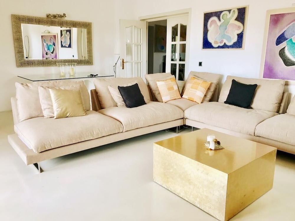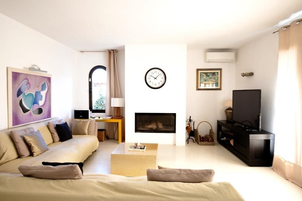 Si decides alojarte en esta villa de Santa Eulària des Riu, estarás cerca de la playa y a menos de 15 minutos en coche de Puerto de Ibiza y Museo Etnológico. Además, esta villa se encuentra a 18,2 km de Playa d'en Bossa y a 12,6 km de Playa de Talamanca. Regálate una estancia fantástica en esta villa donde, además de aire acondicionado, tendrás una piscina privada y un televisión de pantalla plana. Por su parte, la cocina cuenta con frigorífico grande, horno y con placa de cocina. Podrás mantenerte al día gracias a la conexión wifi gratis y también disfrutar de canales por cable. Tendrás un microondas y una lavadora-secadora. El servicio de limpieza se ofrece a petición. Las distancias se expresan en números redondos.